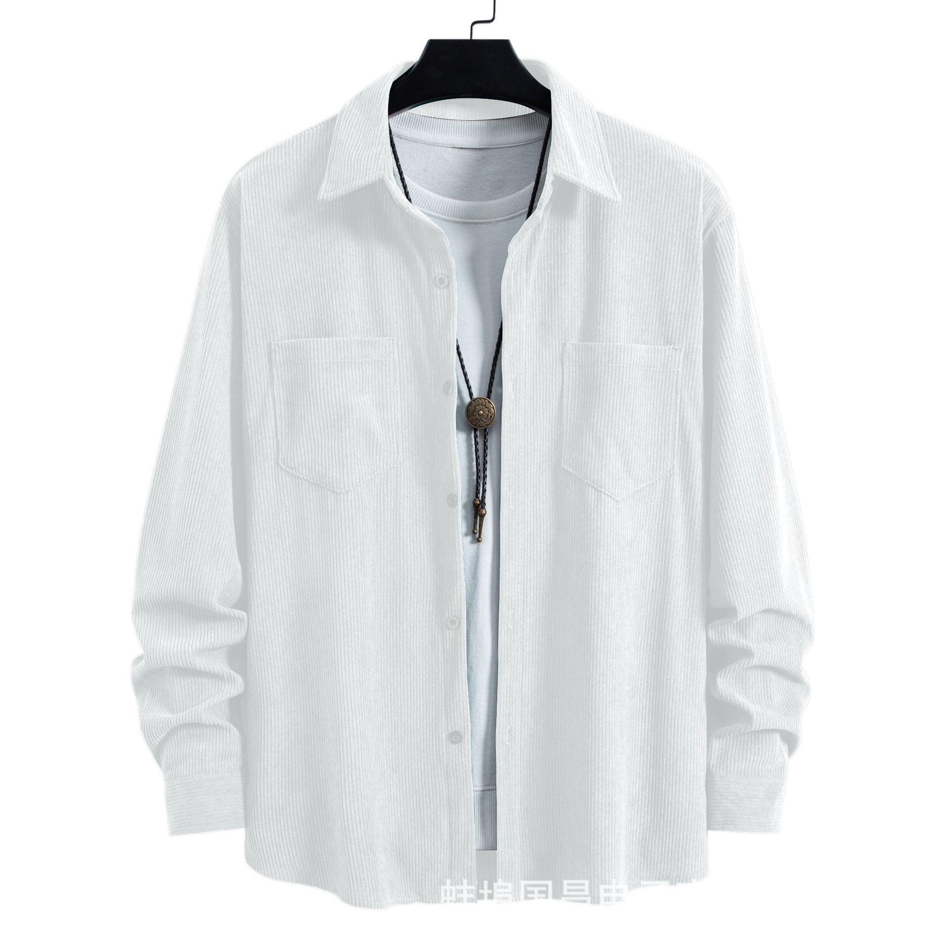 Men\'s Spring New Foreign Trade Corduroy Solid Color Collar Cardigan Long Sleeve Buckle Retro Casual Shirt Coat for Men