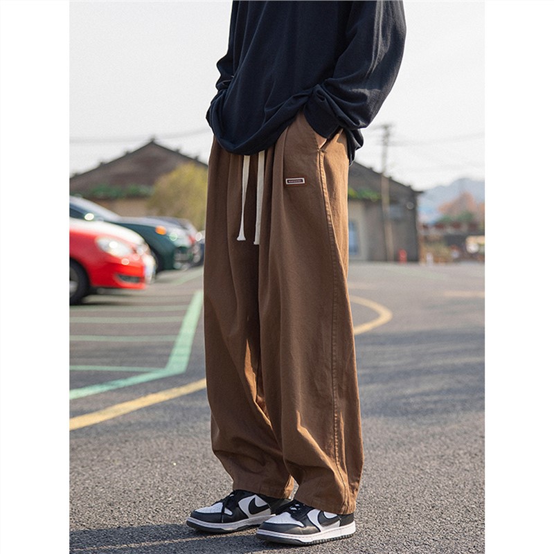 American retro brown pants men\'s spring and autumn ootd outfit and fall casual work pants straight loose wide-leg pants