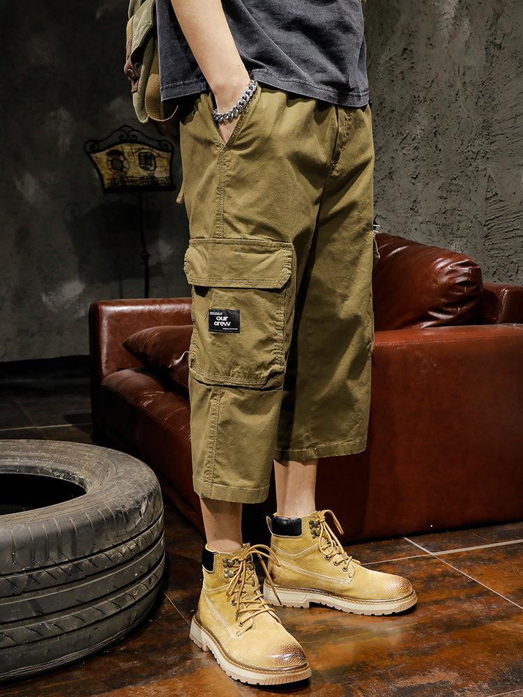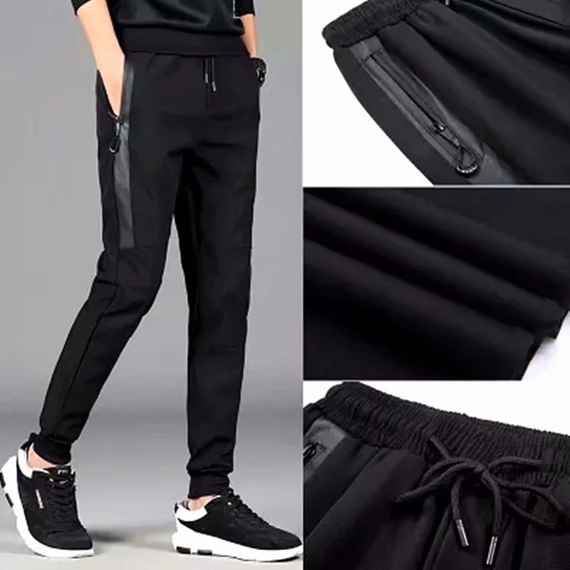New spring and autumn large-size men\'s casual pants pocket zipper youth sports pants Hong Kong style loose trend nine-point pants