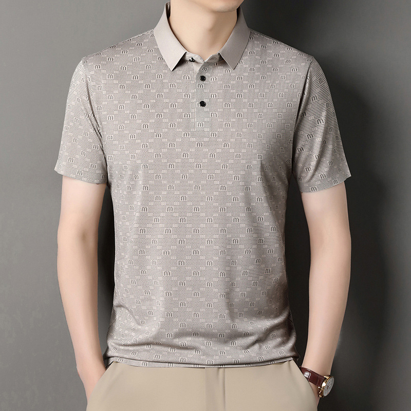 Summer polo shirt short-sleeved T-shirt men\'s new style bamboo jacquard mesh ice silk lapel solid color simple shirt top