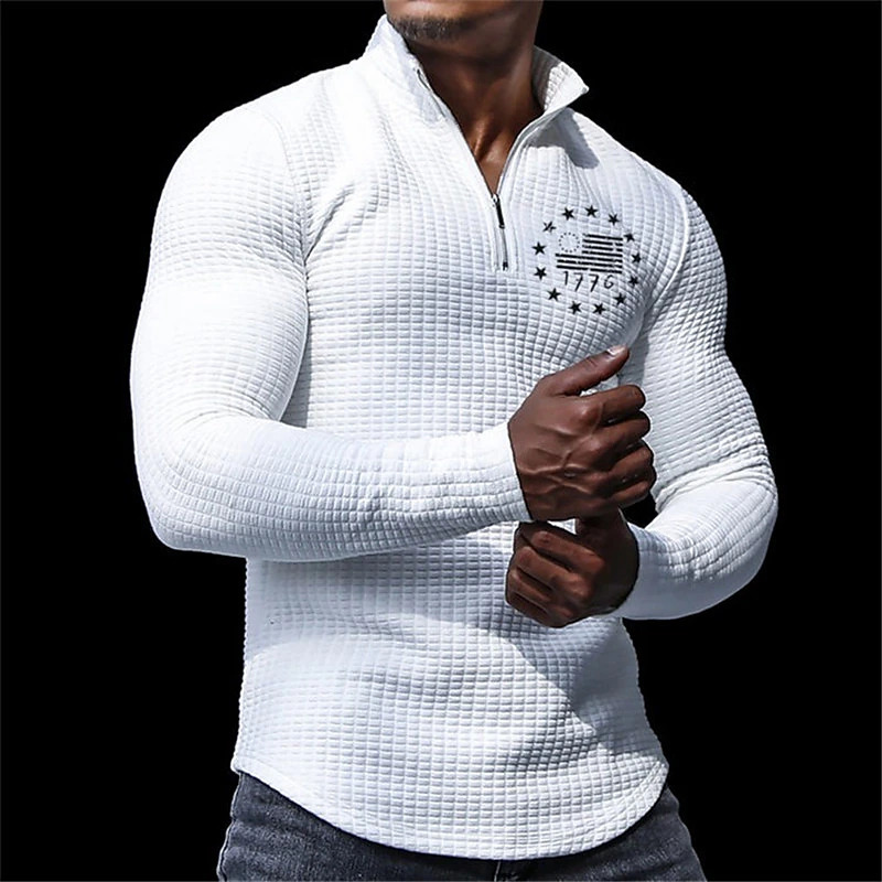 Cross-border men\'s clothing, European and American spring and autumn small checkered sweatshirt stand collar half zipper long sleeve jacquard sweatshirt men\'s top