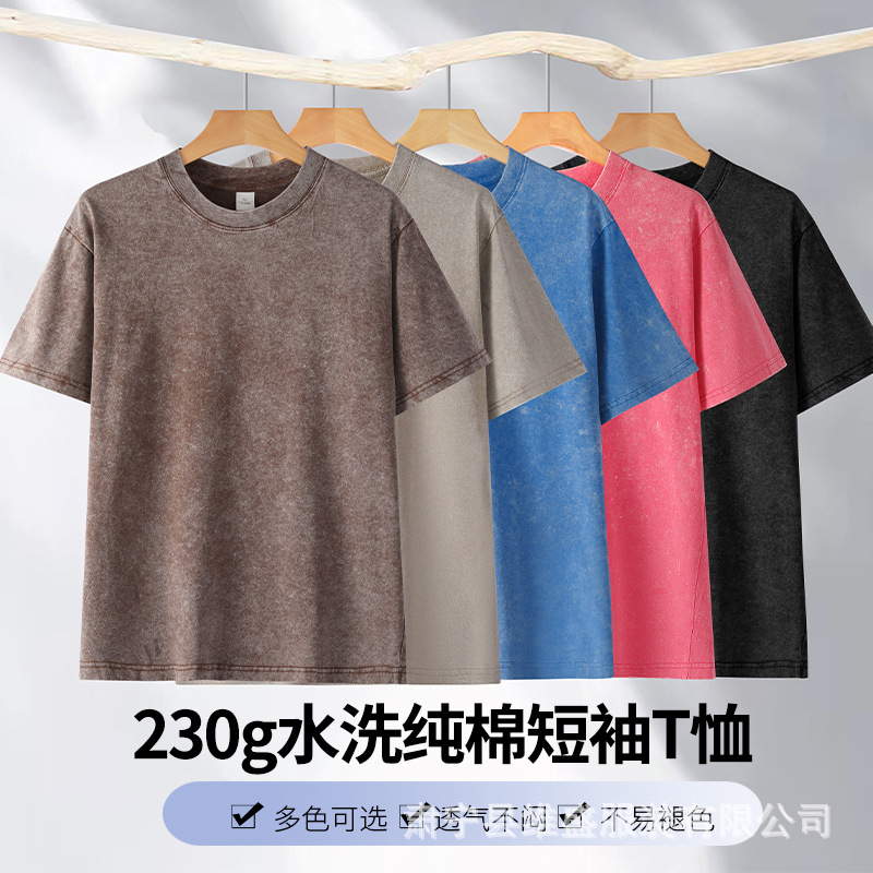 Heavy Batik 230g Washed Old Short Sleeve Custom Printed Logo T-shirt Men and Women Heavy Pure Cotton Half Sleeve Loose
