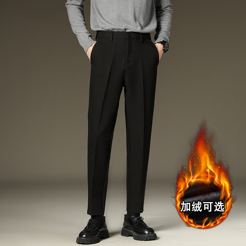 Men\'s autumn and winter trousers with straight leg and drooping feeling, cropped pants, men\'s thick velvet business suit pants, casual pants