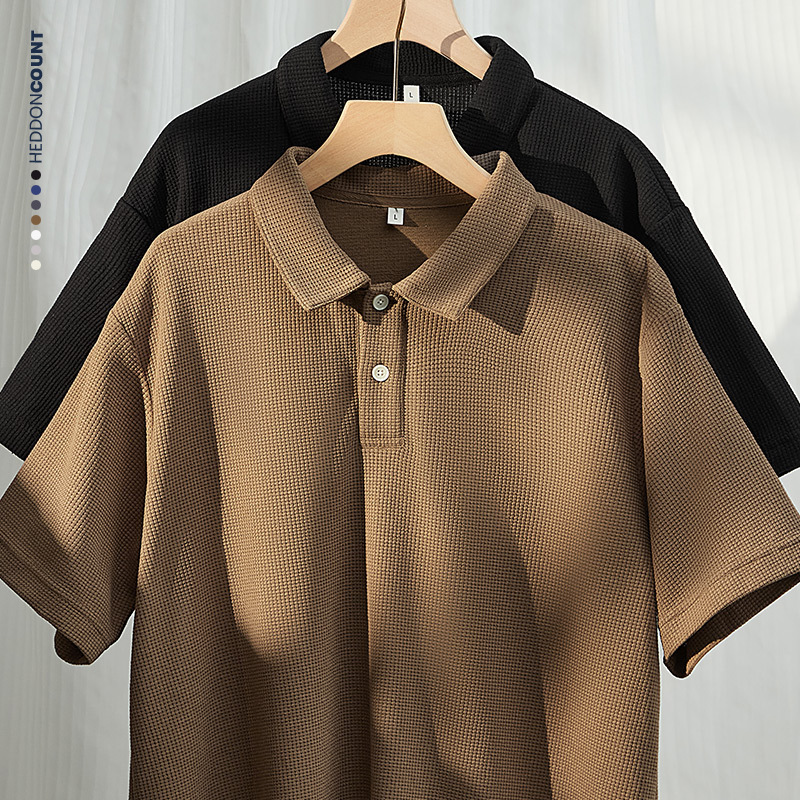 High-end waffle short-sleeved T-shirt POLO shirt men\'s loose 2025 spring and summer new comfortable lapel shirt