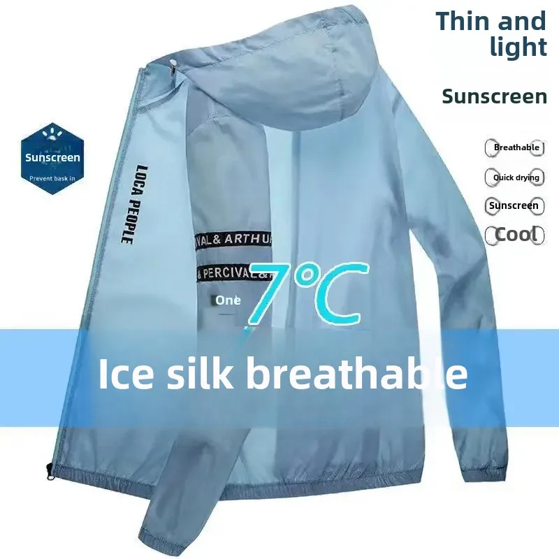 Upf50+ outdoor ice silk sun protection clothes for men and women summer UV light and thin breathable fishing sun protection clothes jacket