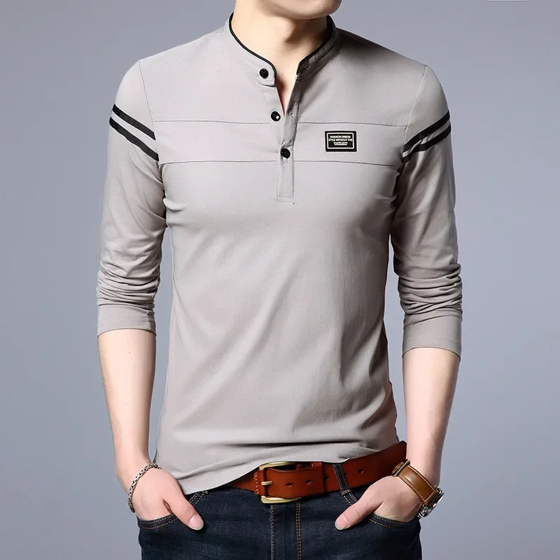 2023 European and American Amazon autumn new men\'s casual solid color long-sleeved POLO stand-up collar simple top