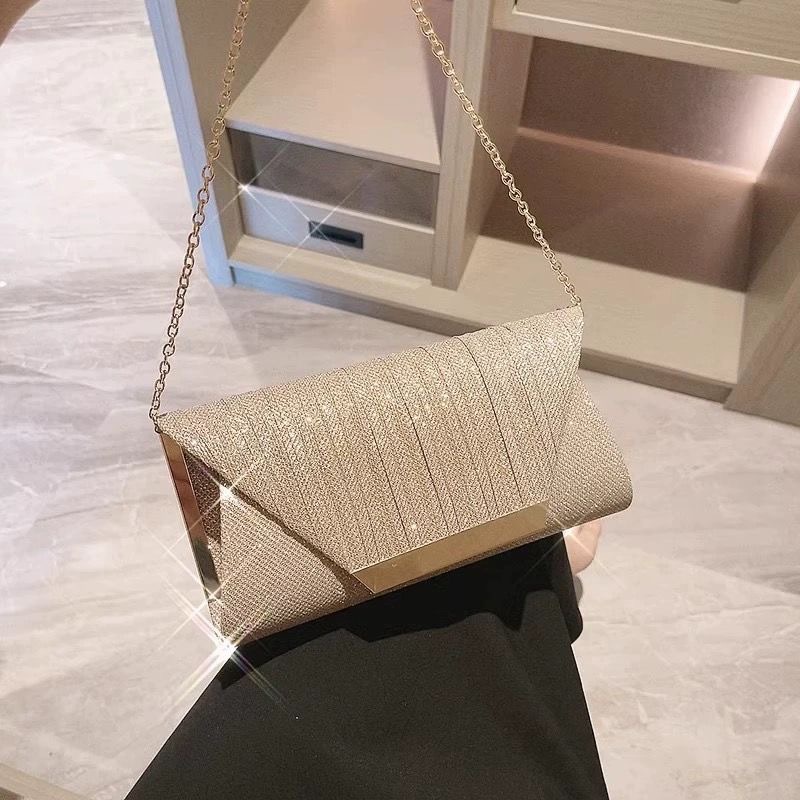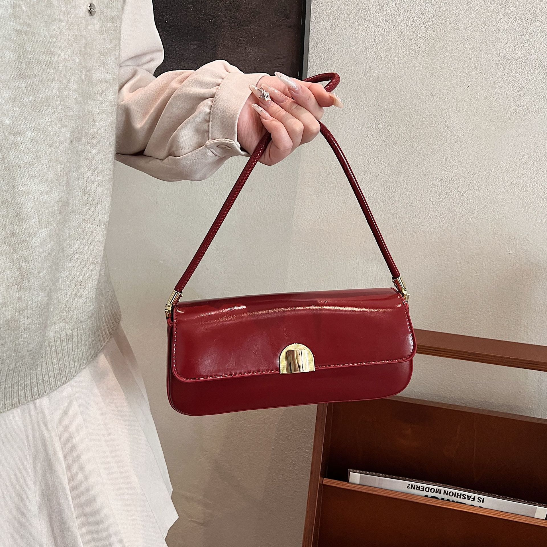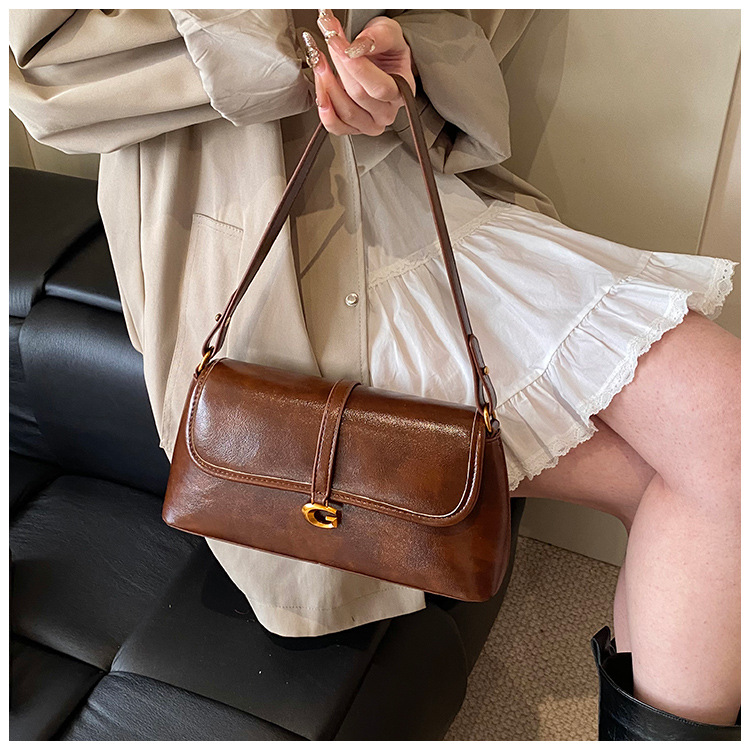 New product large capacity leather gold bag trendy ins gold clip shoulder bag retro versatile solid color PU leather women\'s bag