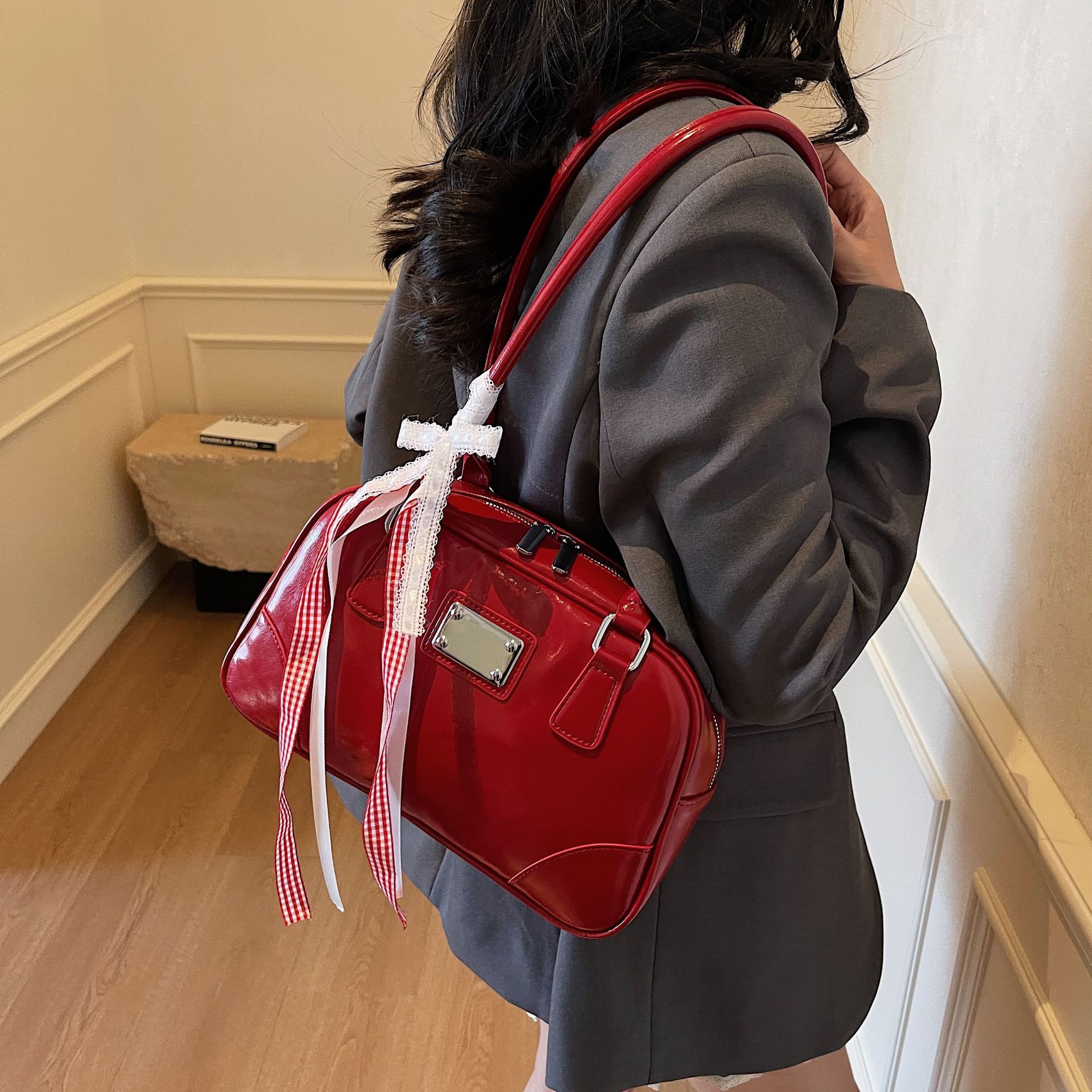 One-shoulder backpack for women tote bag high-end large capacity autumn and winter new style with bow shoulder straps underarm bag