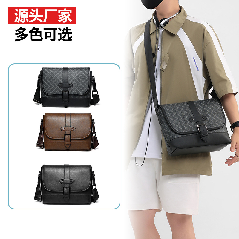 Single shoulder bag, men\'s bag, retro men\'s bag, official document crossbody bag, large capacity new casual bag, trendy handbag wholesale