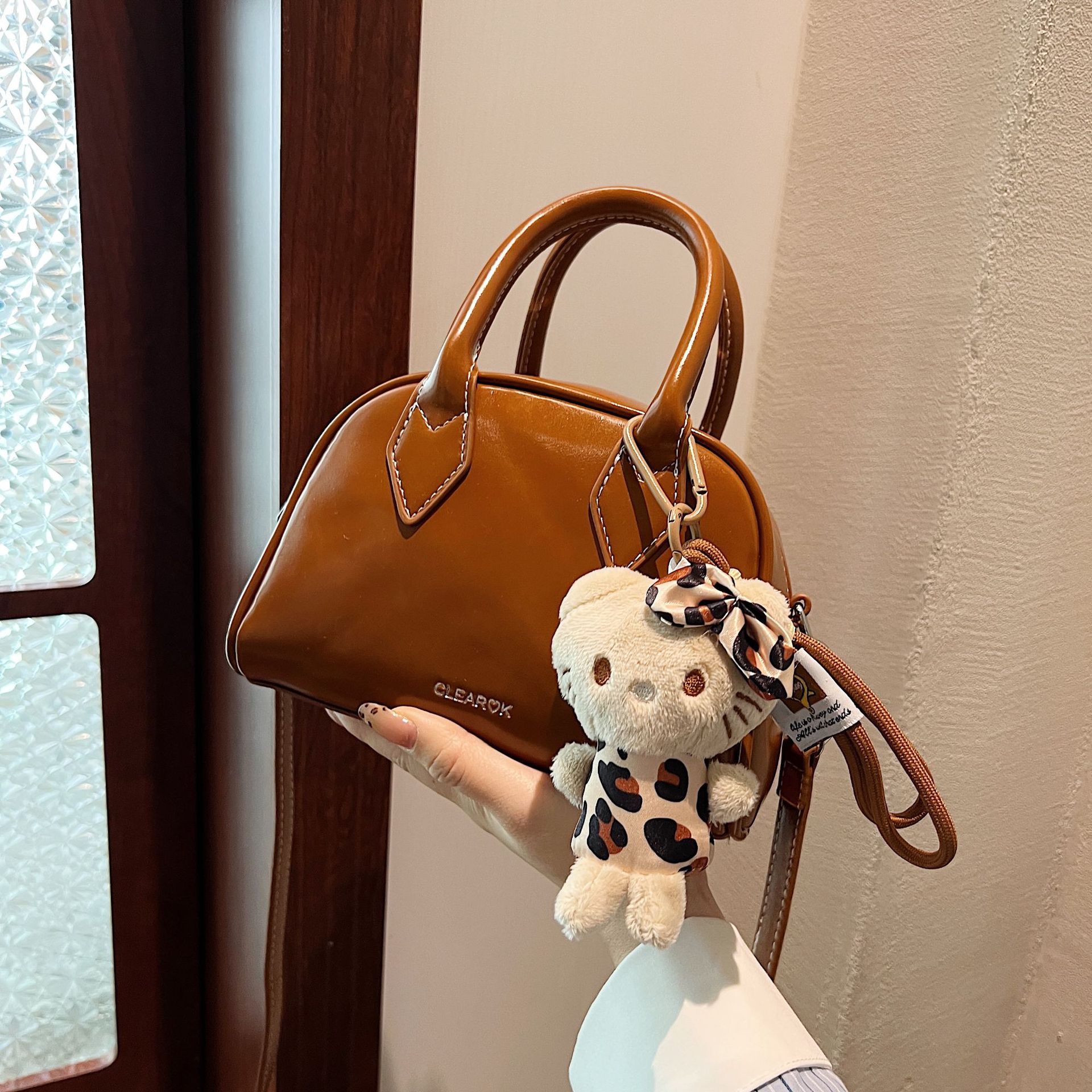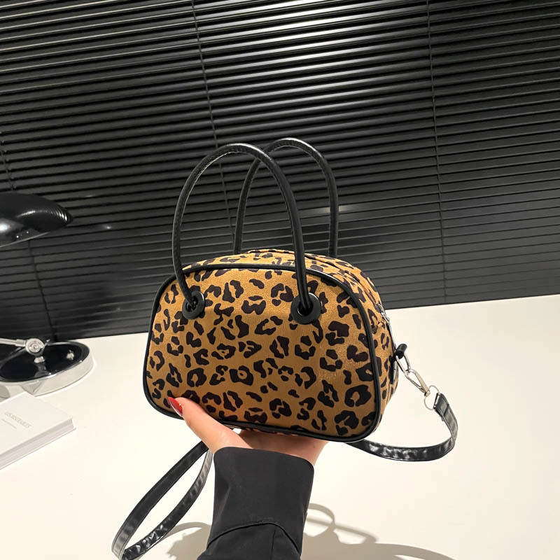 Retro leopard print bowling bag handbag for women 2024 new autumn and winter large-capacity commuting bag one-shoulder underarm bag