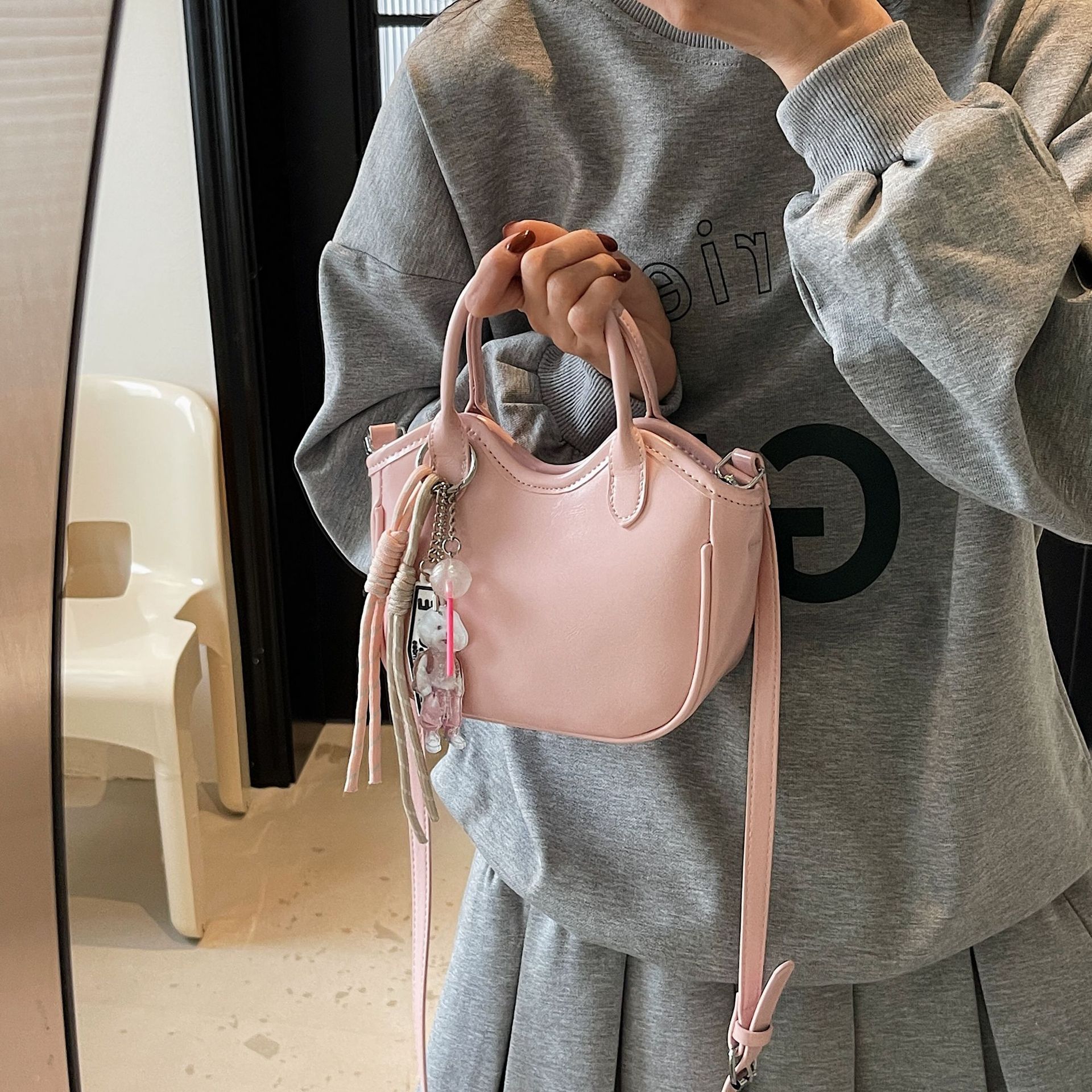 New fashion women\'s bag PU bag Korean style fashion versatile trendy tassel drawstring one-shoulder crossbody bag women\'s bucket bag