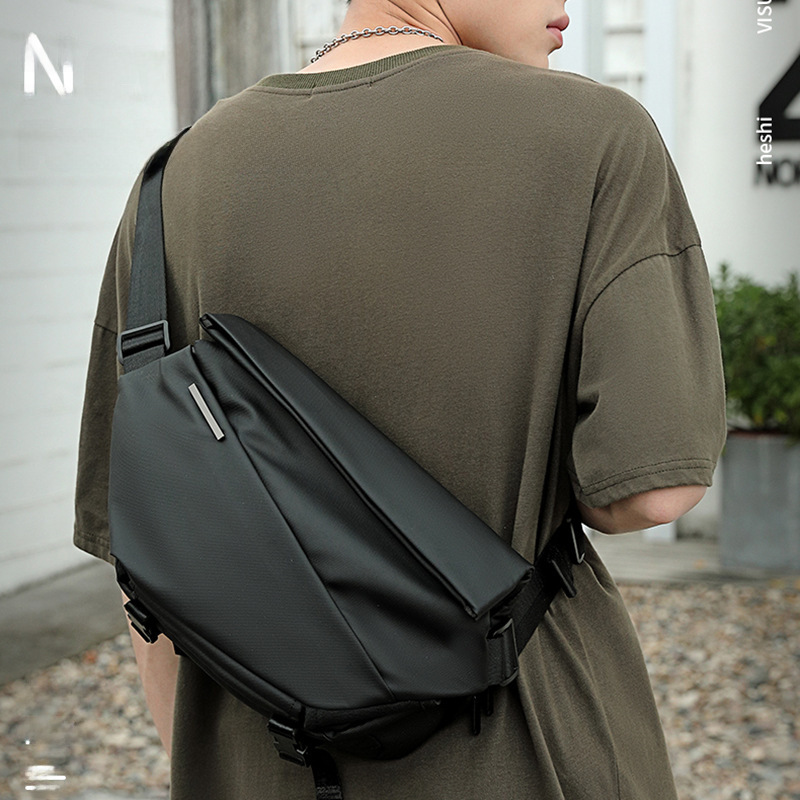 Simple crossbody bag for men 2025 cycling functional workwear bag trendy brand fashion men\'s breast bag commuting versatile shoulder bag