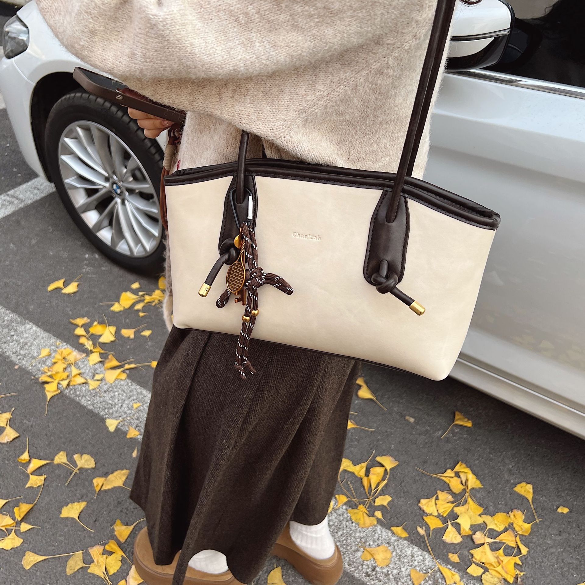 Students commuting in class with large capacity bag for women new 2024 autumn and winter fashion versatile tote bag simple shoulder bag