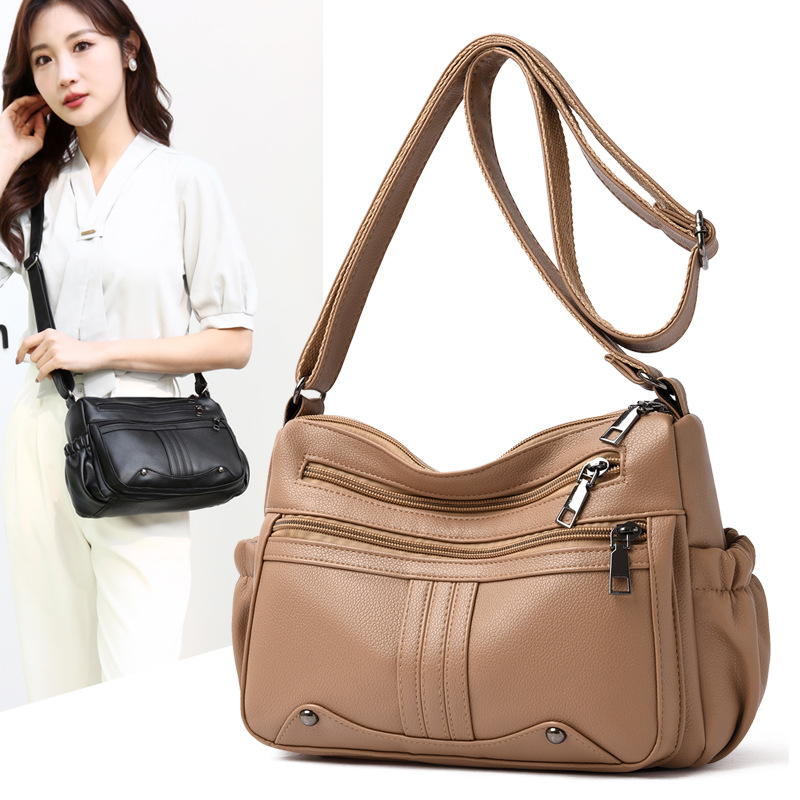2024 new hot-selling women\'s crossbody bag multi-layer practical embroidered diamond pattern shoulder bag middle-aged mother\'s women\'s bag