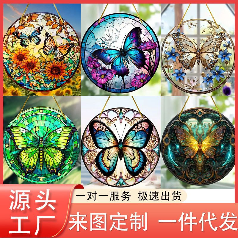 2024 Cross-border circular acrylic painting creative butterfly theme home wall decoration hanging painting living room bedroom mural