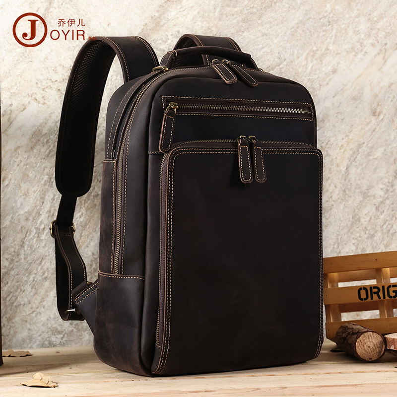 Backpack for men\'s Crazy Horse Leather Large Capacity Business 15.6-inch Computer Bag Genuine Leather College Students Backpack