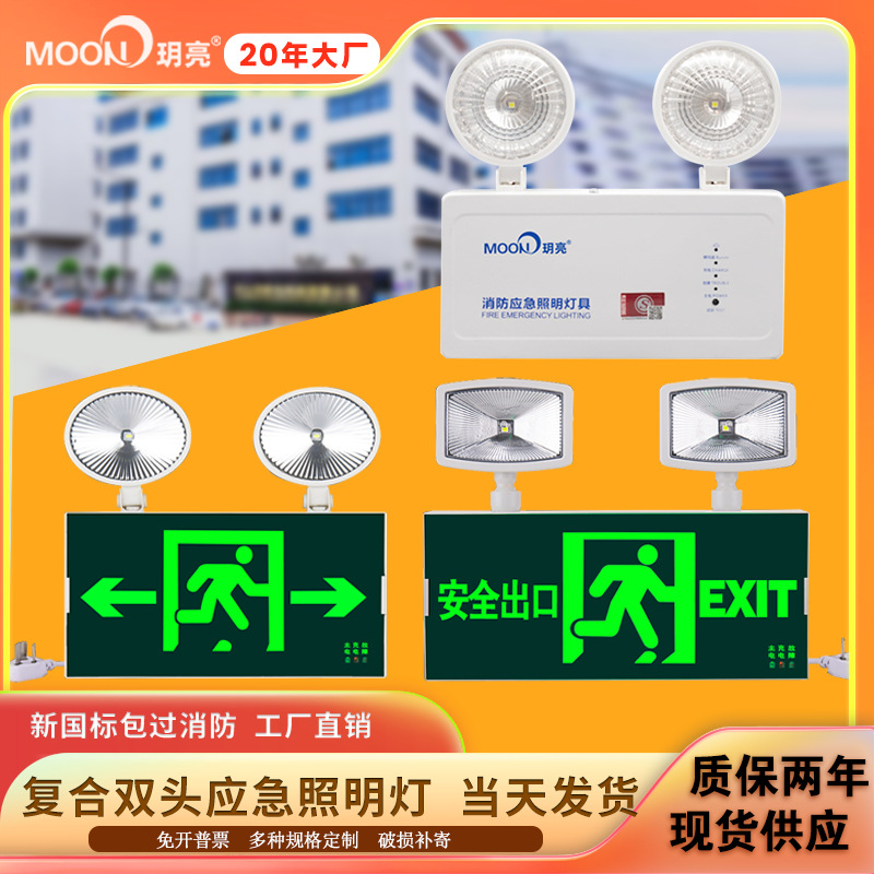 Fire emergency lights two-in-one national standard project double-head emergency light evacuation power outage safety exit sign