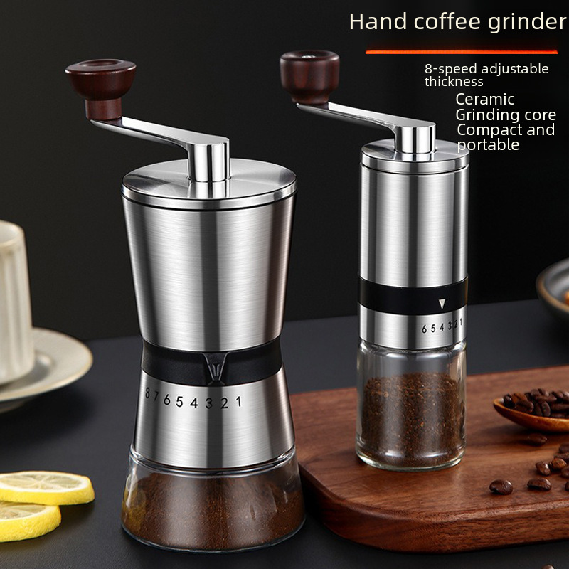 Cross border hot harvesting 304 stainless steel hand cranked coffee machine, adjustable thickness for office use, manual grinder, portable grinder