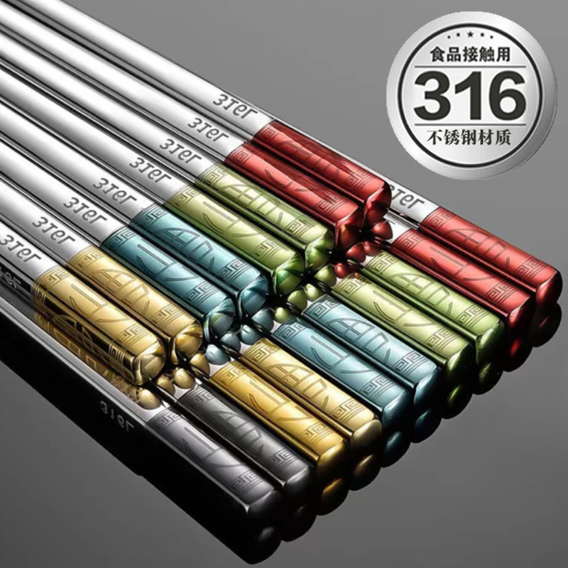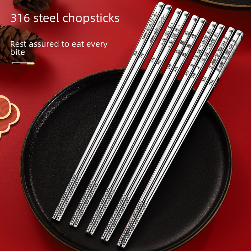 316L stainless steel chopsticks, household anti-slip anti-scalding, all-round chopsticks 304 hot pot chopsticks children\'s chopsticks tableware set