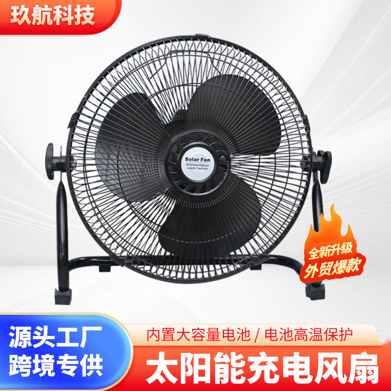 Solar floor fan 12-inch brushless motor 3-speed charging household power outage emergency large wind power platform fan