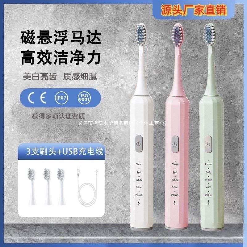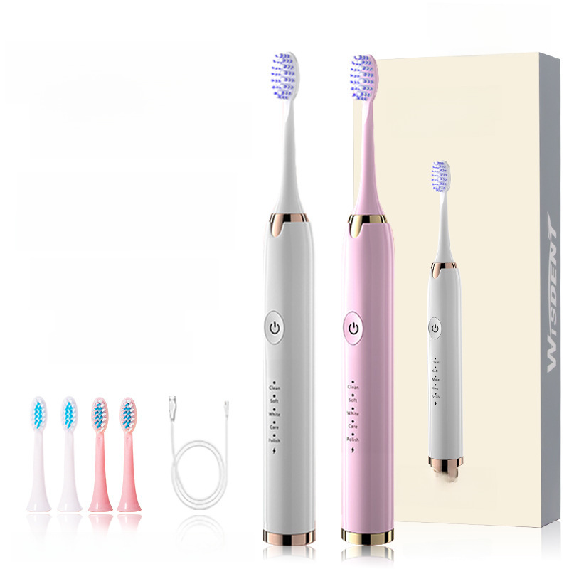 Cross-border adult electric toothbrush USB charging sound wave vibration toothbrush head soft bristle waterproof 5-speed fully automatic couple