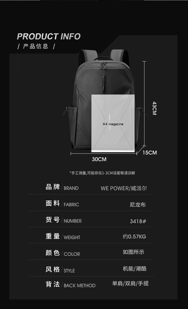 【产品货号】3418#休闲双肩包