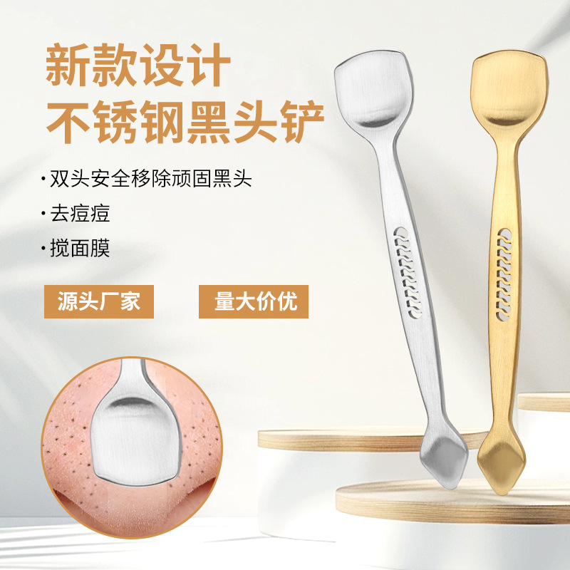 New Design Stainless Steel Blackhead Scraper Blackhead Beauty Tool Blackhead Removal Facial Cleaning Double Headed Shovel Wholesale