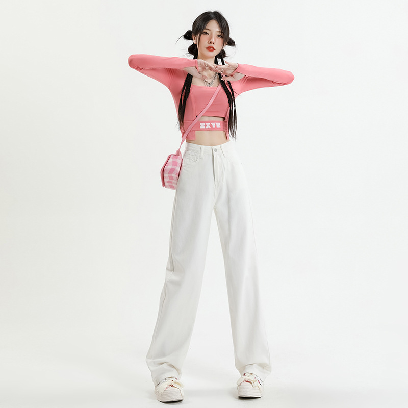 Narrow version straight white jeans for women 2025 spring high-waisted small person slim loose wide-leg draped floor pants