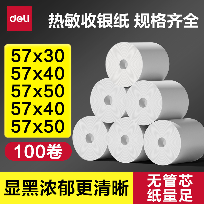 Deli Thermal Cash Register 57x50 Printing Paper Ticket Paper Thermal Paper Supermarket Meituan Takeout Coreless Whole Box