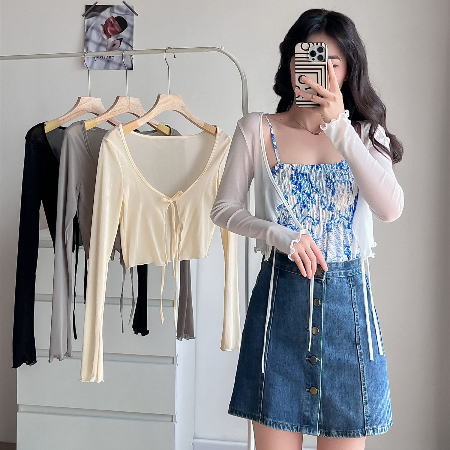 Sunscreen cardigan thin women's summer shawl outer cover with camisole dress mesh ice silk small camisole jacket