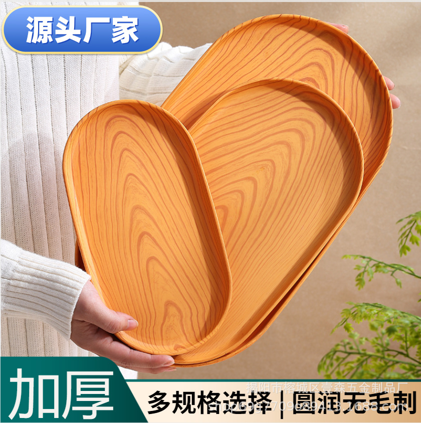 Cross-border Amazon household commercial imitation wood grain plastic tray new oval tea tray wedding premium plate wholesale