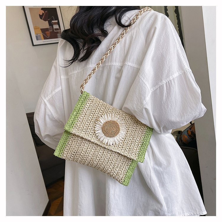 Straw woven bag women\'s bag Internet celebrity new sunflower ethnic style fairy simple casual crossbody bag handbag