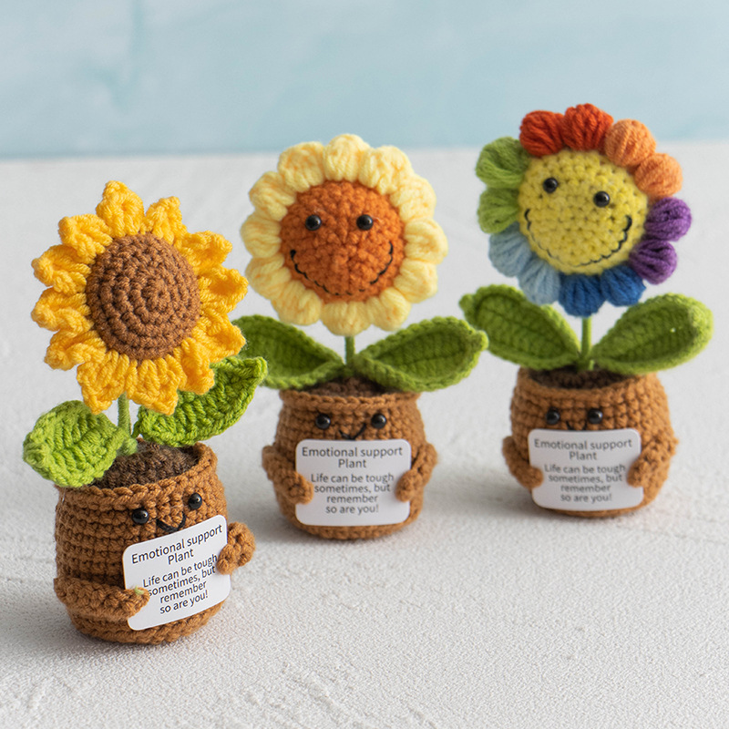 Cross-border hand-crocheted sunflower potted finished products positive energy handheld card doll simulated flower desktop ornaments