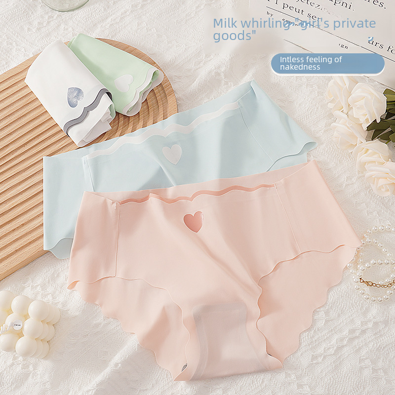 Japanese thin, traceless ice silk heart underwear for women, middle waist large size solid color graphene cotton crotch girl briefs