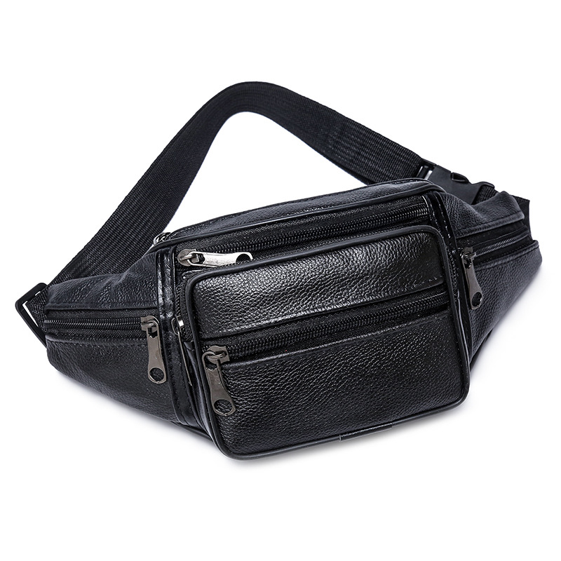 Cross-border 2023 new cowhide men\'s waist bag genuine leather shoulder bag chest bag fashionable soft leather fashionable sports shoulder bag