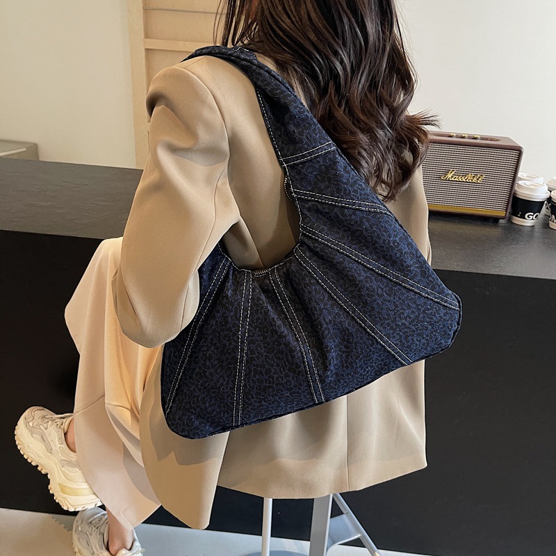 2024 autumn and winter new high-end design and fashionable denim splicing niche single back underarm women\'s bag Bags