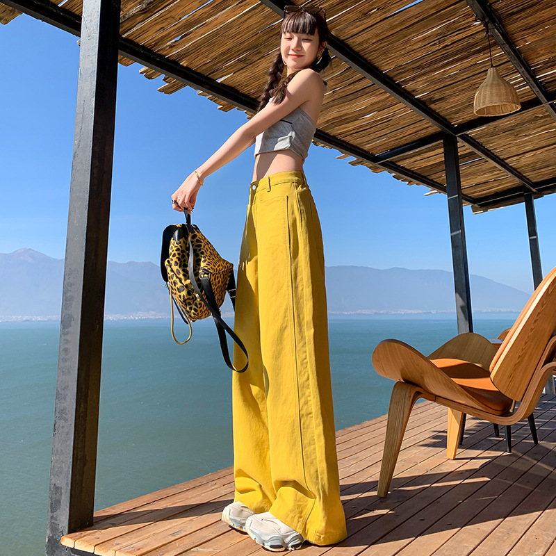 2025 spring new women\'s casual straight pants wide-leg pants yellow casual hot girl style jeans women