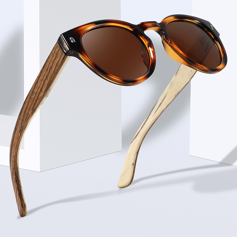 2024 European and American New Large Frame Cat Eye Bamboo and Wood Glasses Fashion Wooden Polarized Sunglasses for Men, Sandwich Wooden Sunglasses for Women
