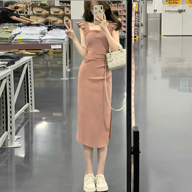 French style short flying sleeve slit skirt, summer new style, pure desire, slimming, hip hugging long dress, women\'s dress